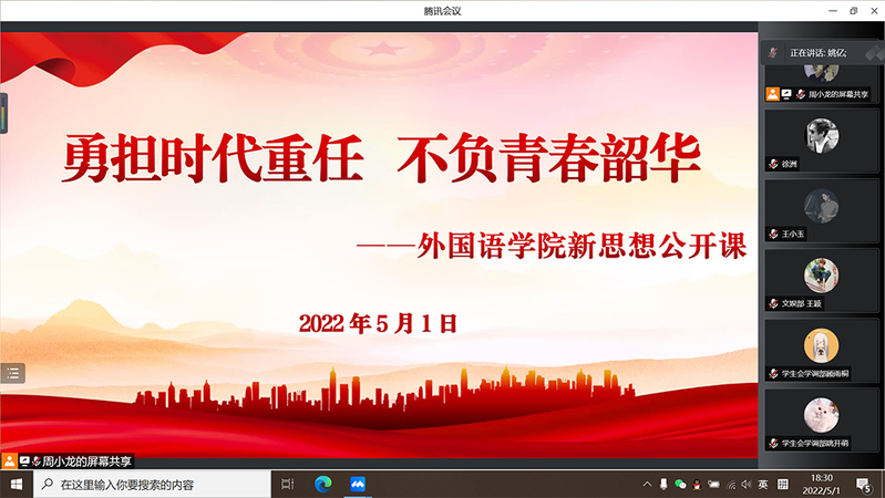 5月1日,69视频 以线上方式举办主题为“勇担时代重任 不负青春韶华”的新思想公开课。