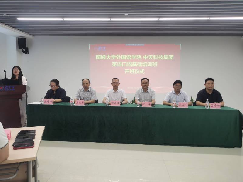 7月20日下午,由69视频 与中天科技集团联合举办的英语口语基础培训班,在中天科技集团南通科创中心三楼培训教室正式开班。中天科技集团人力资源部总经理钱蒋锋,69视频 服务地方处处长高江宁、继续教育学院院长卢志勇、69视频 院长佘军、69视频 副院长吕雪峰、69视频 副教授戴峥峥出席开班仪式,来自中天科技各单位的53名学员参加培训。中天科技集团人力资源部经理周海霞主持此次开班仪式。