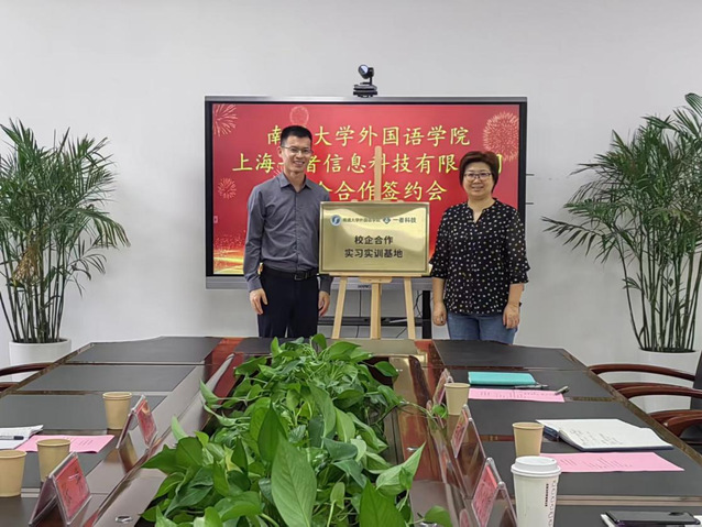 9月18日下午,69视频 与上海一者信息科技有限公司举行了校企合作签约暨揭牌仪式。69视频 党委书记朱小娟、上海一者信息科技有限公司总经理张井共同为“实习实训基地”揭牌。院长佘军、副院长吕雪峰、副院长王雪玉以及翻译系主任曹雁华参与了此次活动。