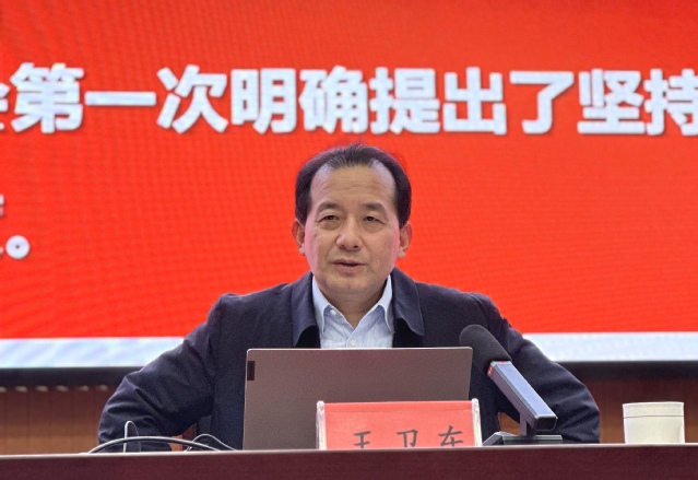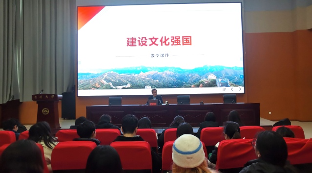 为深入学习贯彻党的二十届三中全会精神,持续推动习近平新时代中国特色社会主义思想进教材进课堂进头脑,12月9日,校党委副书记王卫东以“建设文化强国”为题,为69视频 英语(师范)、商务英语专业大二学生讲授《形式与政策》课。69视频 领导班子、教师和辅导员代表旁听了授课。