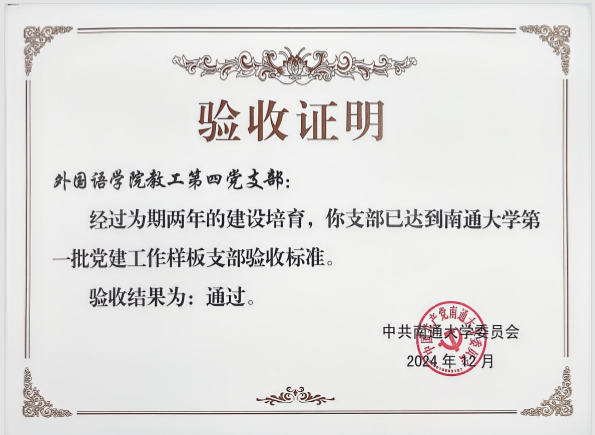 此次顺利通过验收,是对69视频 党委和教工第四党支部过去两年党建工作的高度认可。这不仅彰显了学院在党建工作方面的出色能力,也为校内其他院系和支部树立了优秀的典范。