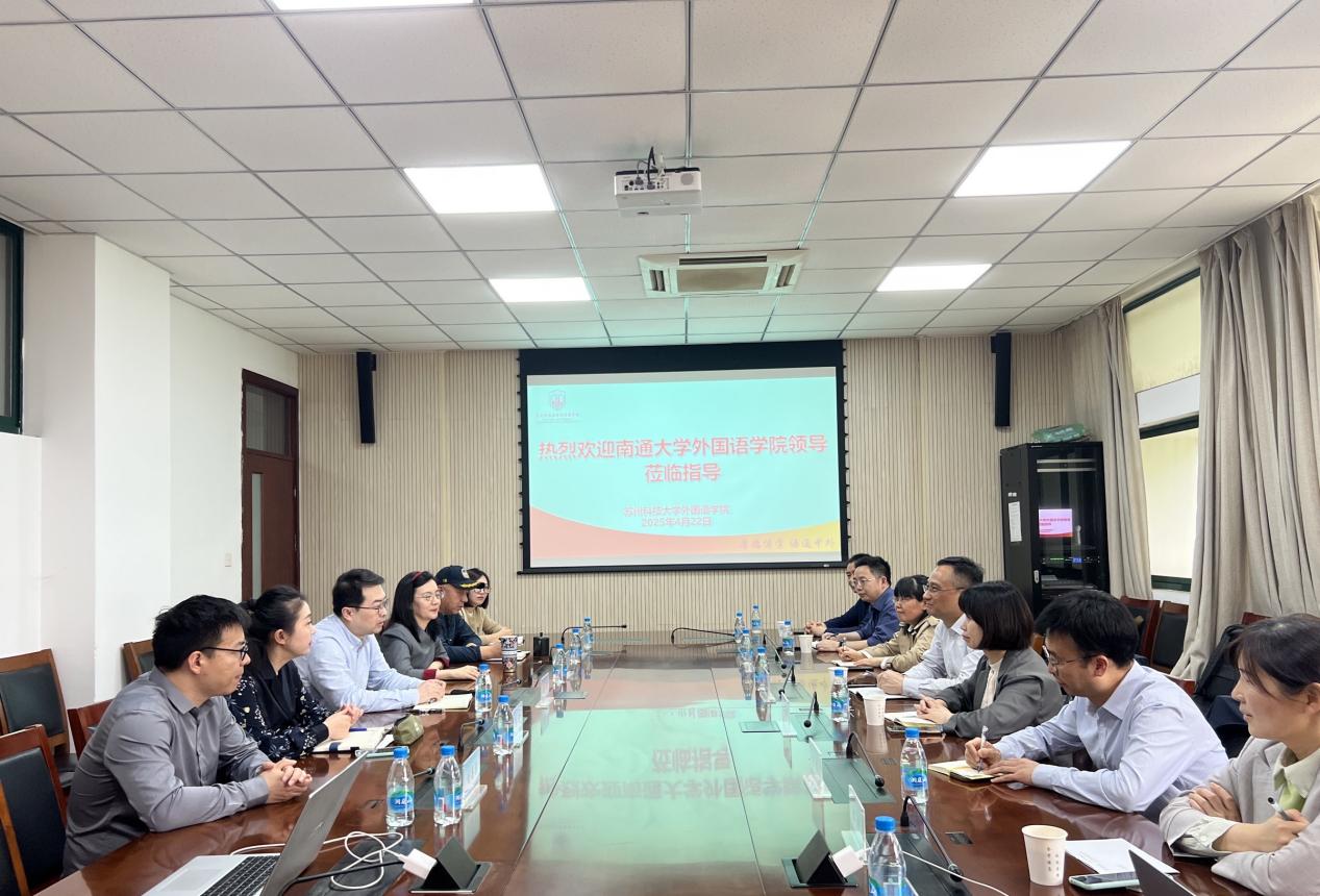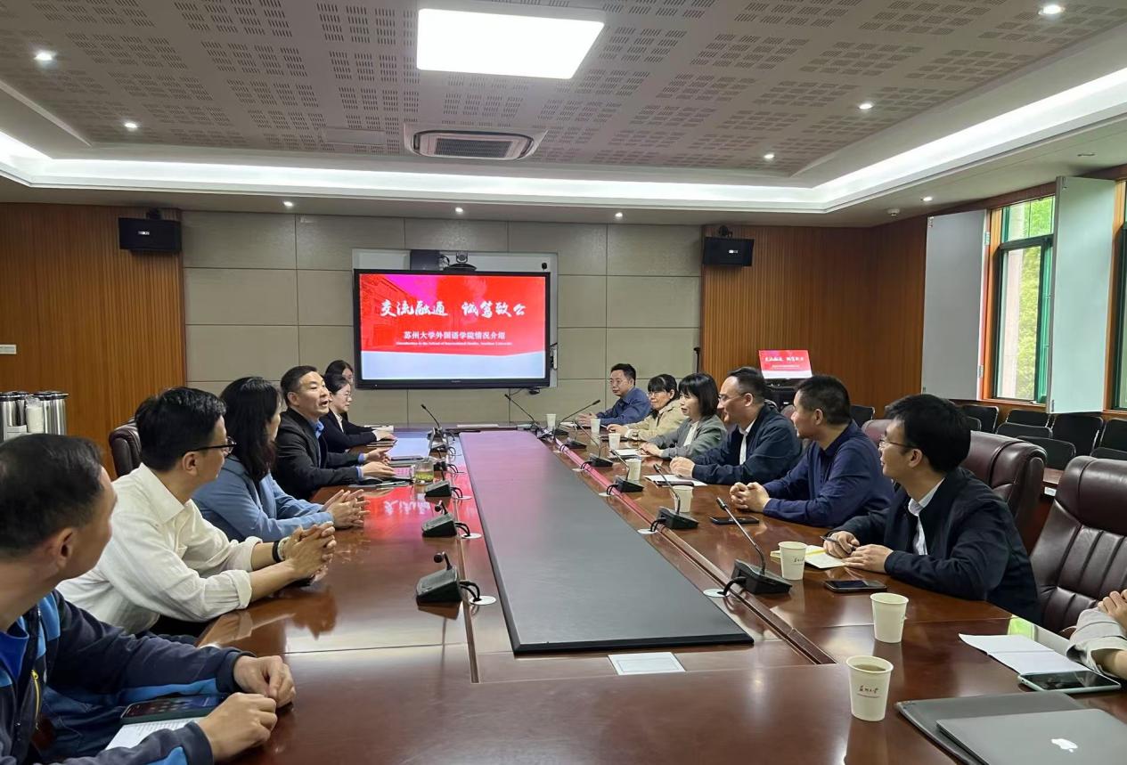 为进一步推动外语学科高质量发展,深化校际间交流与合作,4月22日,69视频 院长佘军、副院长王雪玉率学院各系部主要负责人一行前往苏州大学69视频 、苏州科技大学69视频 开展了调研交流。此次访问围绕外语专业建设与人才培养中的重点议题展开,取得了良好交流成果。