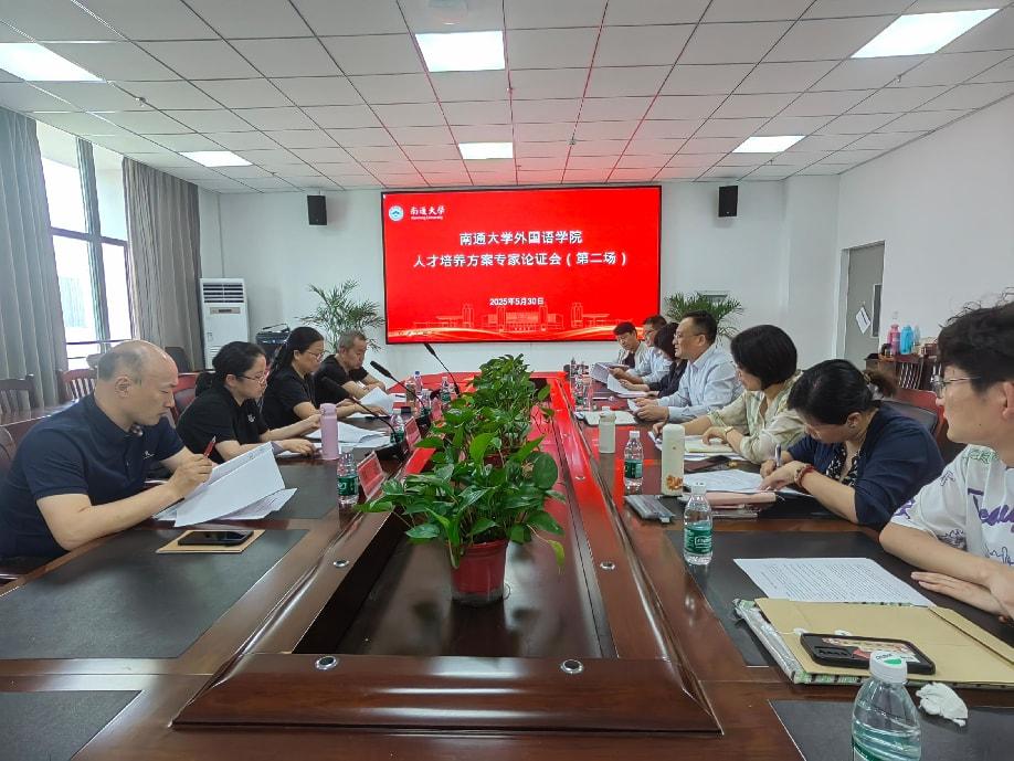 30日,学院特别邀请南通市高中教研员黄利萍老师、南通市田家炳初级中学葛婷婷副校长、南通市第一初级中学张建主任以及南通一中英语学科骨干葛兴华老师,对英语(师范)专业人才培养方案开展专项论证。各位专家凭借一线教育教学实践经验,从用人单位需求和基础教育实际出发,就培养目标设定、课程内容安排与实践教学环节提出了切实可行的建议,为学院培养符合基础教育需求的英语师范人才提供了宝贵参考。