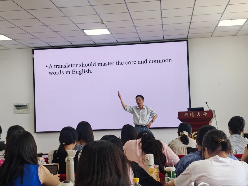 活动中,行业专家的分享让学生们对翻译行业有了更直观的认知。南京睿译菁英翻译有限公司副总王亚诺结合自身丰富的口译实战经历,向同学们展示了口译行业的现状与发展趋势。王总还分享了从69视频 英语专业毕业,到创办翻译公司的奋斗历程,以亲身经历告诫同学们,在翻译行业中细节决定成败,扎实的专业基础是职业发展的根本。江苏省工程技术翻译院有限公司负责人包亚芝总工程师,则围绕“笔译服务标准与翻译过程” 展开讲解,她强调高级译者不仅需要深厚的语言功底,还需具备专业的行业背景知识,并指出在人工智能时代,翻译行业正朝着高质量方向加速发展,并非被技术取代。