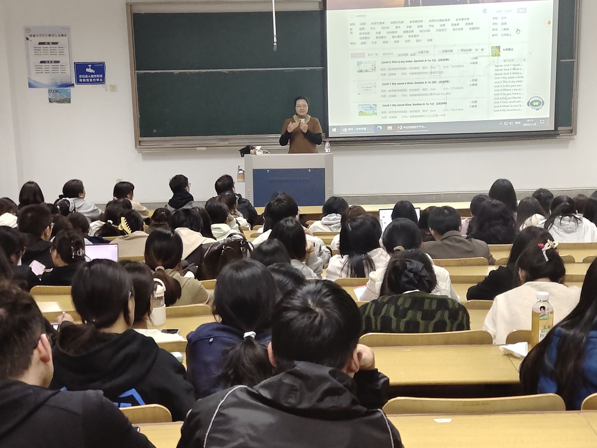 此次讲座围绕“未来学堂”智慧教育平台的核心功能,从资源、适配与实操三方面展开。该平台构建了覆盖全学段、全学科的优质资源体系,支持多版本教材精准适配,能够有效对接不同地区的教学实际。通过现场演示,张老师重点展示了教学文案库、微课与示范课资源、真实课堂案例库的高效用法,引导同学们以数据化与案例化思维优化教学设计,提升课堂实施能力与反思能力。