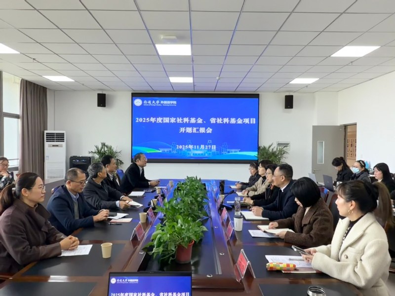11月27日上午,69视频 举行了2025年度国家社科基金、省社科基金项目开题汇报会。会议特邀浙江大学吴笛教授、南京大学杨金才教授、广东外语外贸大学冉永平教授、南京工业大学陈世华教授担任评审专家。69视频 人文社科处副处长邹月辉、学院领导班子出席会议。汇报会由院长佘军主持。
