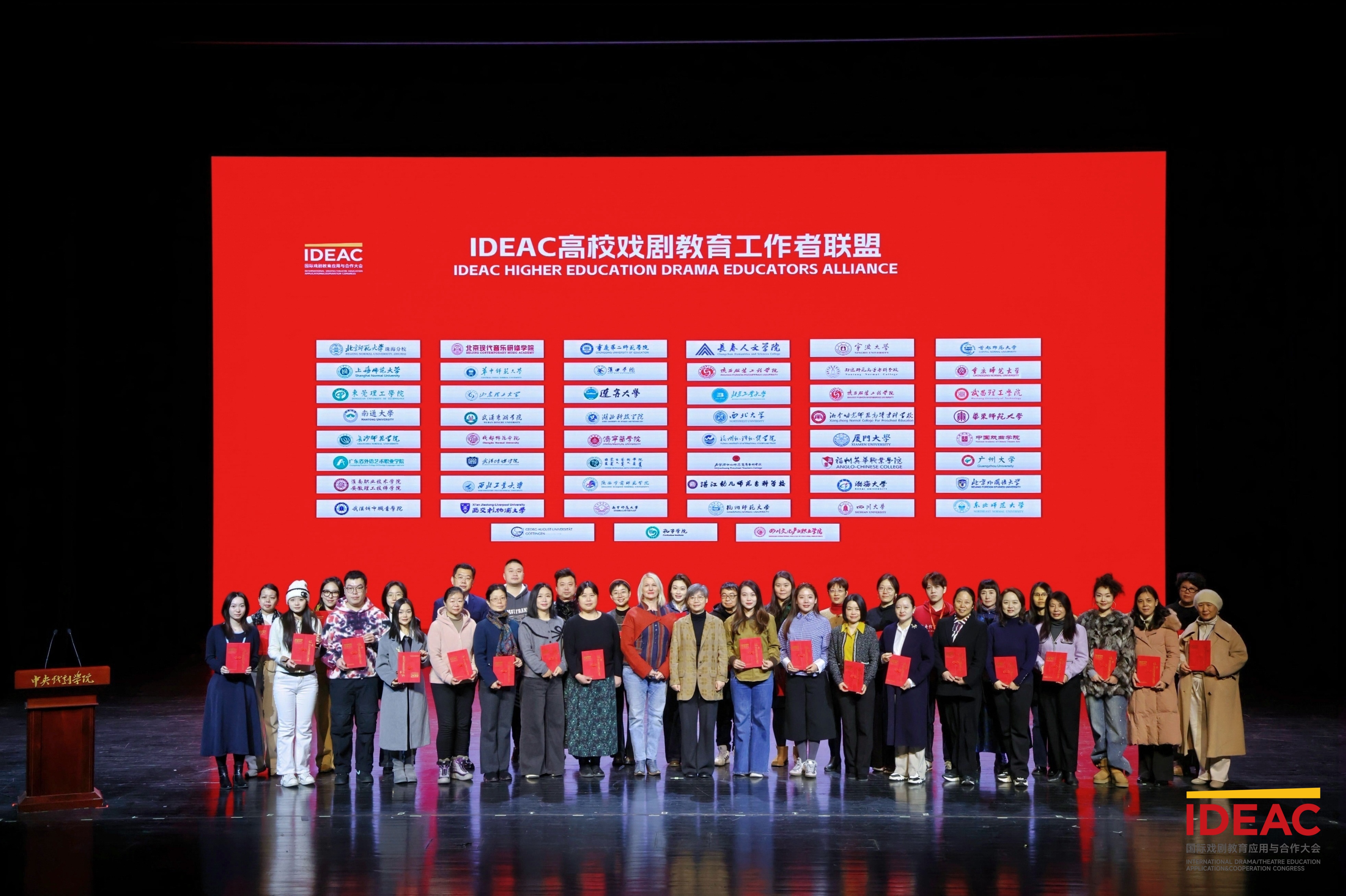 在“IDEAC高校戏剧教育工作者联盟”成立仪式上,姚颖老师作为69视频 的教师代表,与华东师范大学、北京外国语大学、首都师范大学等全国60余所高校的同行共同接受联盟成员证书。此次入盟标志着我校正式加入全国性戏剧教育协作网络,为今后在戏剧教育、英语戏剧教学与跨文化戏剧研究等领域开展校际合作与资源共享奠定坚实基础。我校亦为联盟中少数兼具外国语学科与戏剧教育交叉基础的成员单位之一。