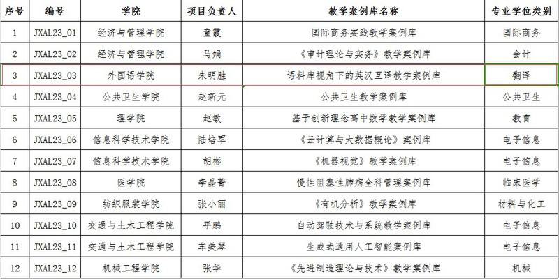 根据《关于开展 2023 年69视频 专业学位研究生教学案例库建设项目申报工作的通知》要求,经任课老师申报、学院推荐、学校组织专家评审,朱明胜教授获专业学位研究生教学案例库建设项目立项。