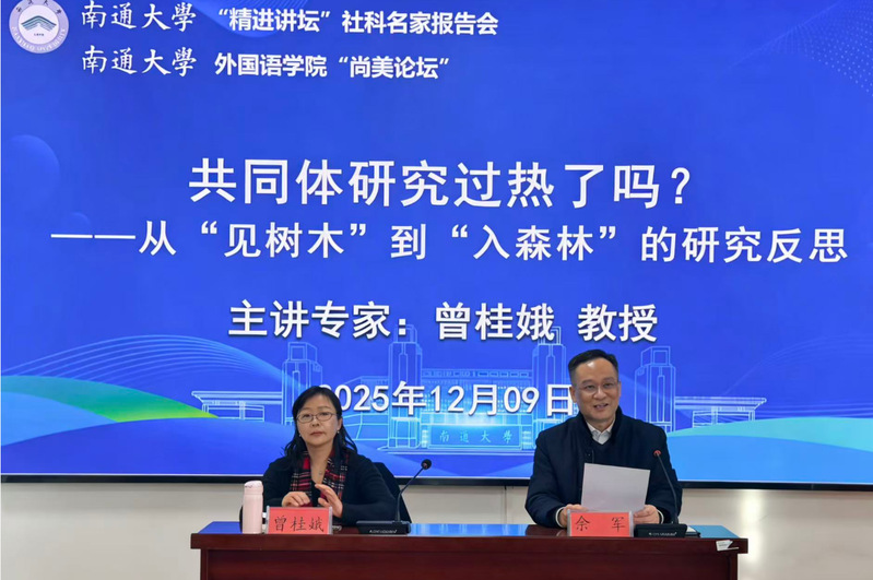 12月9日下午,上海大学杂志社社长、博士生导师曾桂娥教授应邀担任我校“精进讲坛”和69视频 “尚美论坛”主讲专家,作题为《共同体研究过热了吗?——从“见树木”到“入森林”的研究反思》的学术报告。学院院长佘军主持报告会。